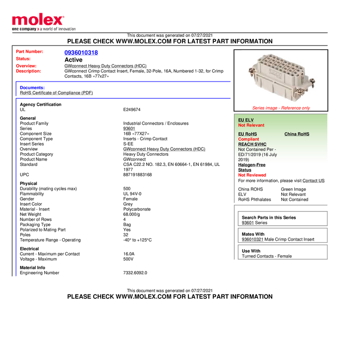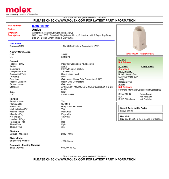 Złącze 936010632 MWE Industrial Solution szaro-biały (ral 9002) Molex Zawartość: 1 szt.