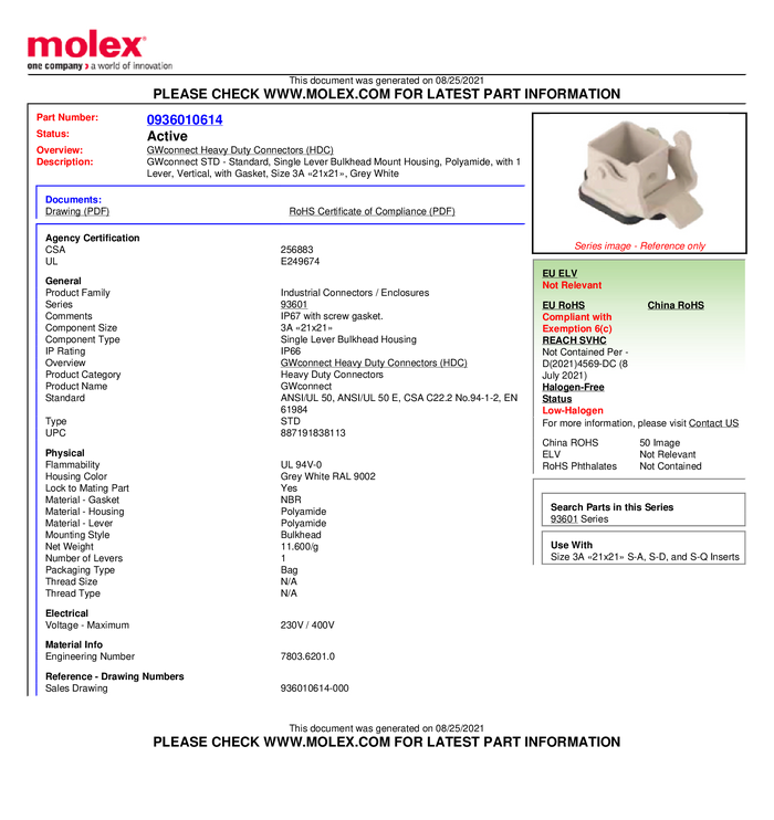 Złącze 936010614 MWE Industrial Solution szaro-biały (ral 9002) Molex Zawartość: 1 szt.