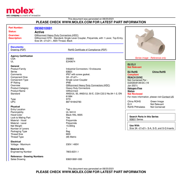 Złącze 936010691 MWE Industrial Solution czarny Molex Zawartość: 1 szt.