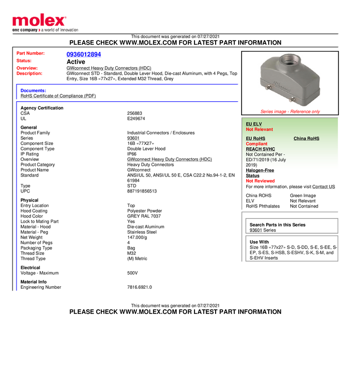 Złącze 936012894 MWE Industrial Solution szary Molex Zawartość: 1 szt.