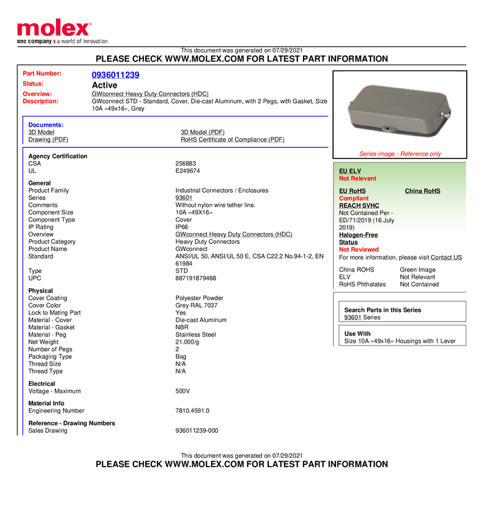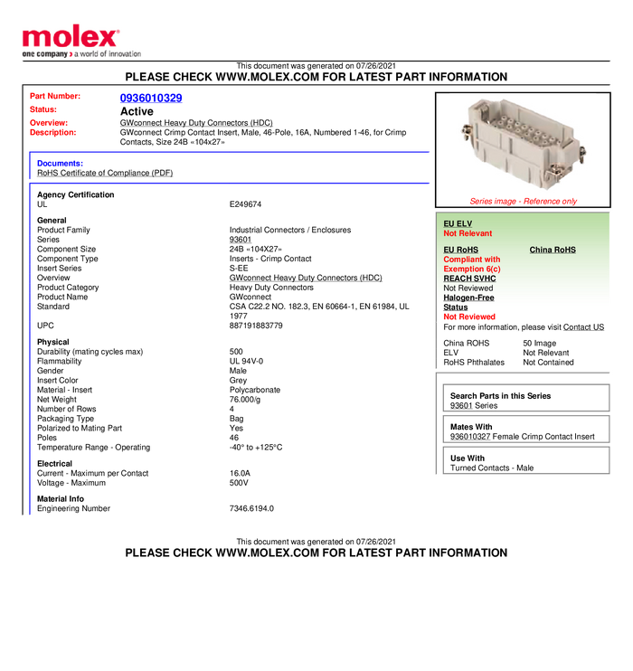 Złącze 936010329 MWE Industrial Solution szary Molex Zawartość: 1 szt.