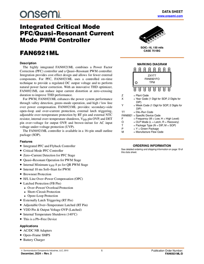 mWSaver™ Power Factor Controller (PFC) CrCM + QR PWM Controller, Brown Out Protection, Programmable OTP