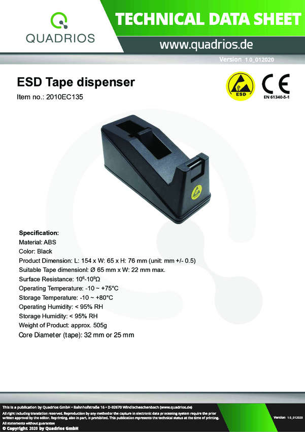 Dyspenser do taśmy ESD Quadrios 2010EC135, 1 szt.