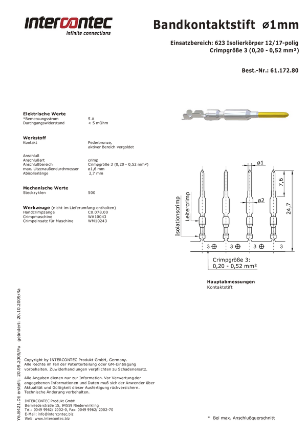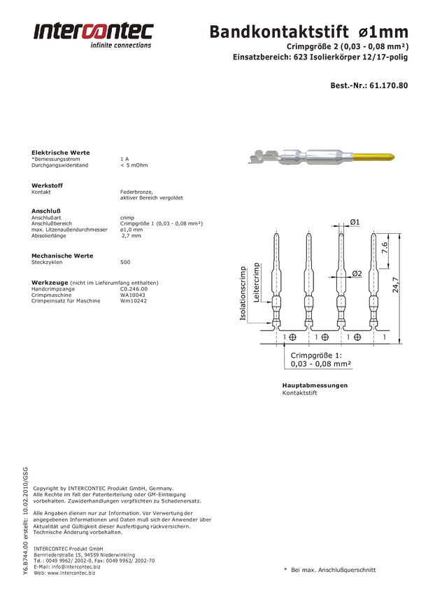 Intercontec 61.170.80 Pin stykowy taśmy 1 szt.
