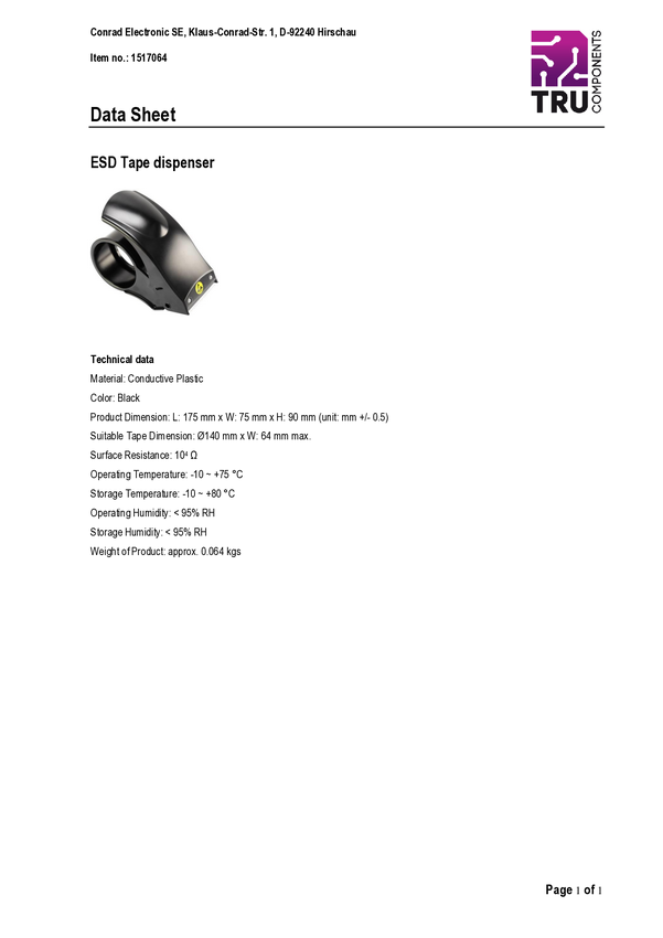 Dyspenser do taśmy ESD TRU COMPONENTS ADTAR-140 plus, 175 mm x 75 mm x 90 mm , 1 szt.