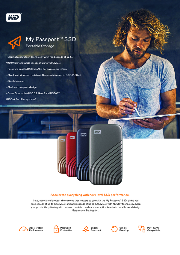Zewnętrzny dysk SSD 6,35 cm (2,5'') WD My Passport WDBAGF0020BBL-WESN 2 TB USB-C® niebieski