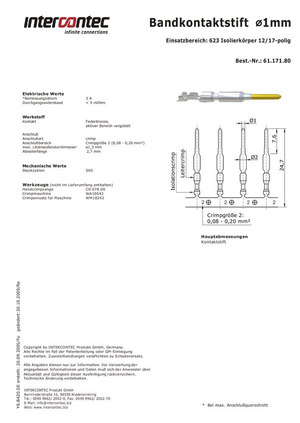Intercontec 61.171.80 Pin stykowy taśmy 1 szt.