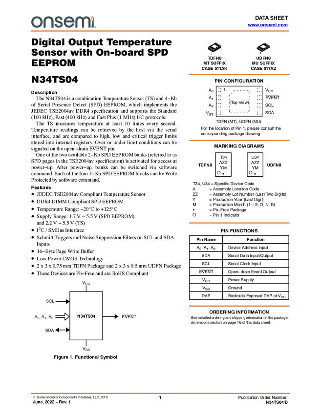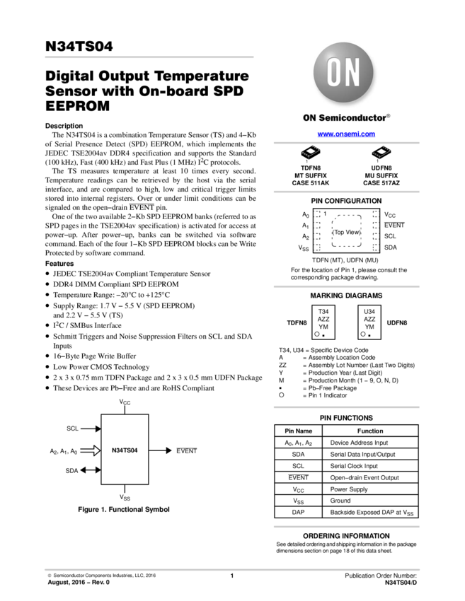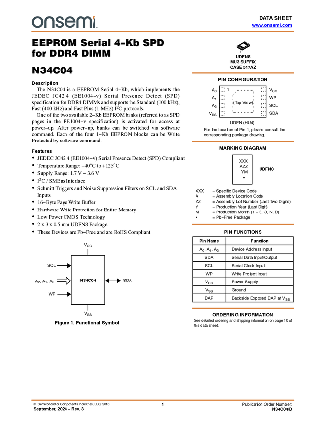 EEPROM Serial 4-Kb SPD for DDR4 DIMM