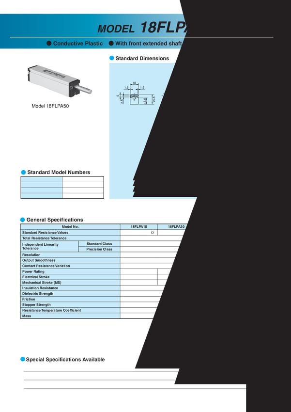 Wykonanie OEM dla Caldaro nasze oznaczenie dla wersji z gwintem Potencjometr PMS8FLP10A-10K-M2-SPRING S8FLP10A-10Kohm+-15% L+-2% Potencjometr liniowy przewodzący plastik; Lin 2%; moc 0,2W pomiar 10mm; wym.7,3x8,2x35mm; sprężyna powrotna; kabel; oś ka z 2 stron z jednej nagwintowana M2x0,4 L1=8mm; IP40; trwa Trwałość 20 mil.cykli; Rezystancja 10 kohm lub wersja bez gwintu S8FLP10A-10K+-15% L.+-2% DC 1203 PMS8FLP10A-10K-SPRING Potencjometr liniowy, przewodzący plastyk; pomiar 10mm; wym: szer 7,3 x wys.8,2 x