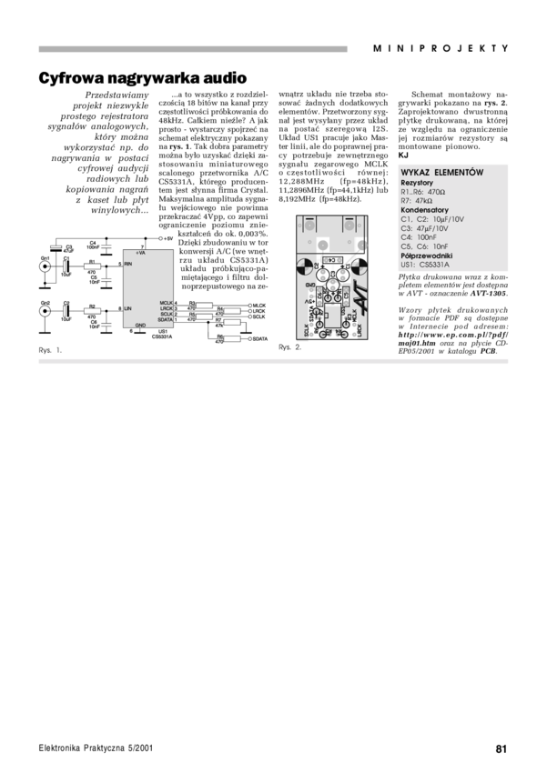 AVT1305 A Cyfrowa nagrywarka audio - płytka drukowana