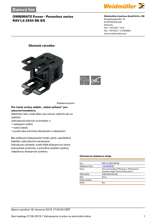Zabezpieczenie przed naprężeniami RSV1,6 ZE 4 SW 1563600000 Weidmüller Zawartość: 25 szt.