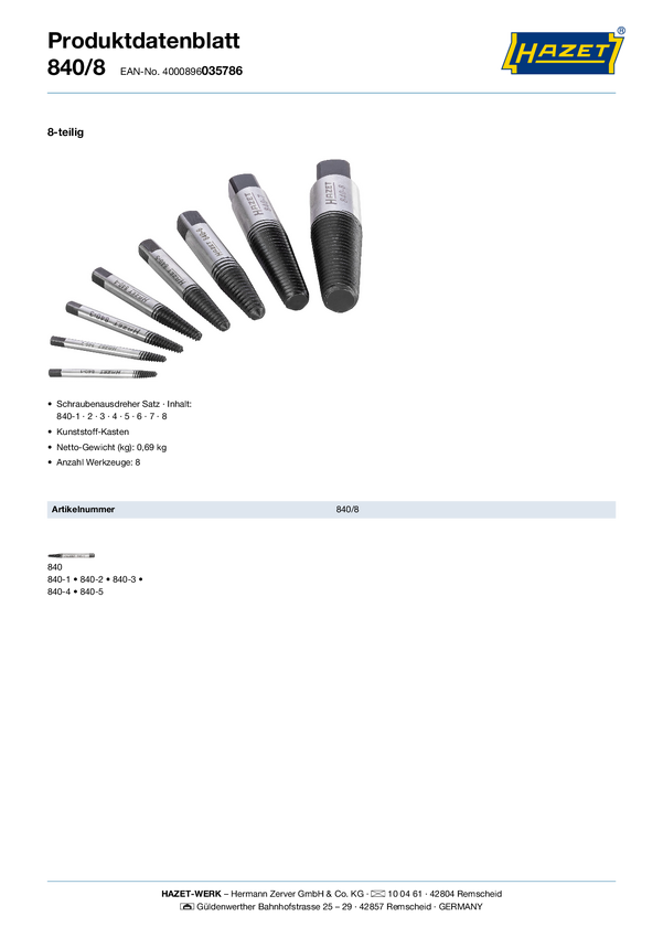 Zestaw do naprawy śrub Hazet 840/8 M3 - M45