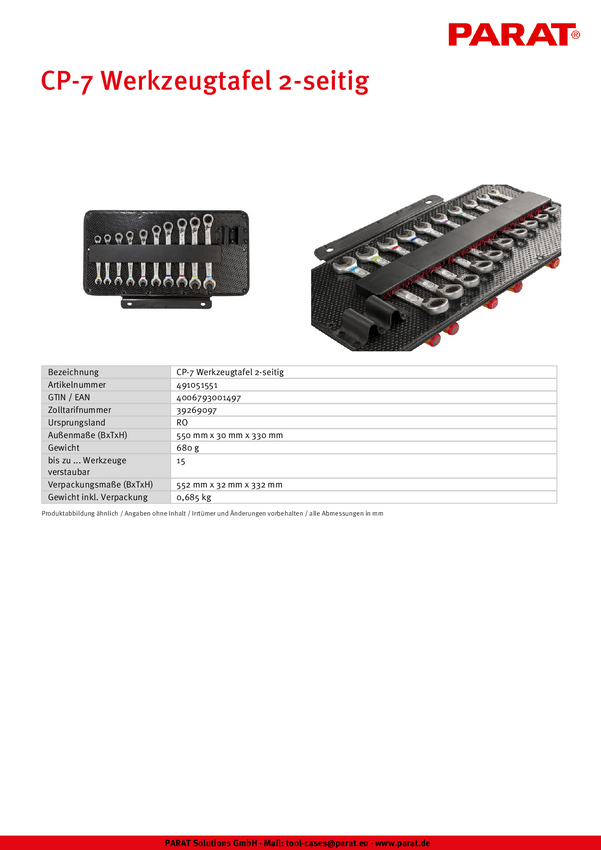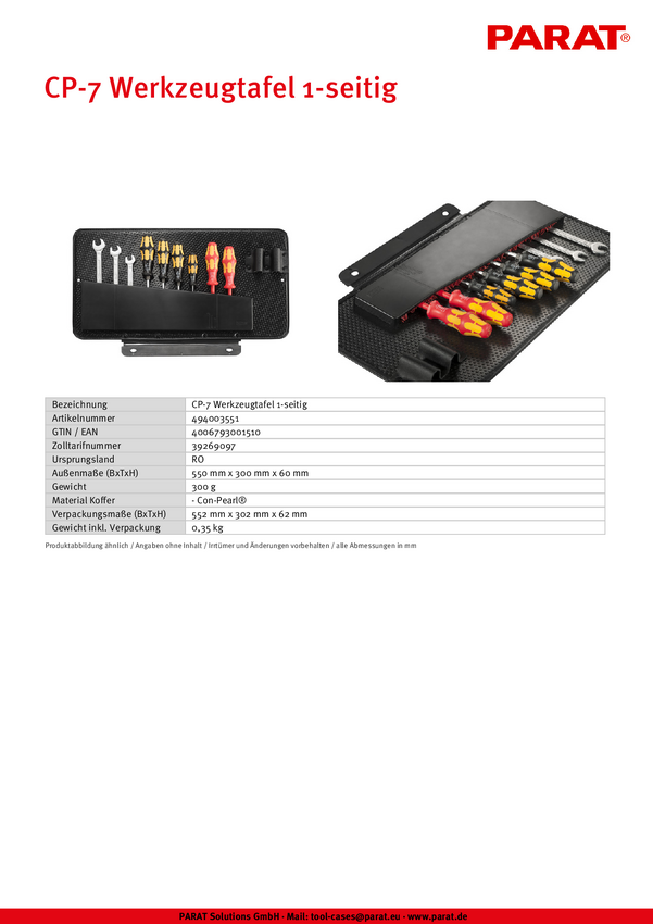 Tablica na narzędzia Parat CP-7 491051551 Wymiary: (D x S x W) 550 x 50 x 230 mm