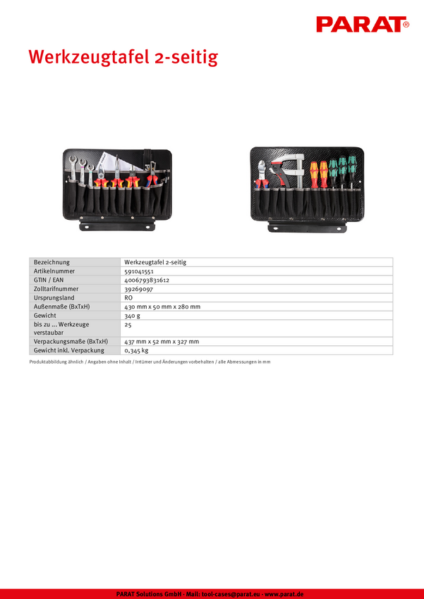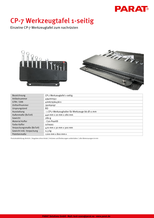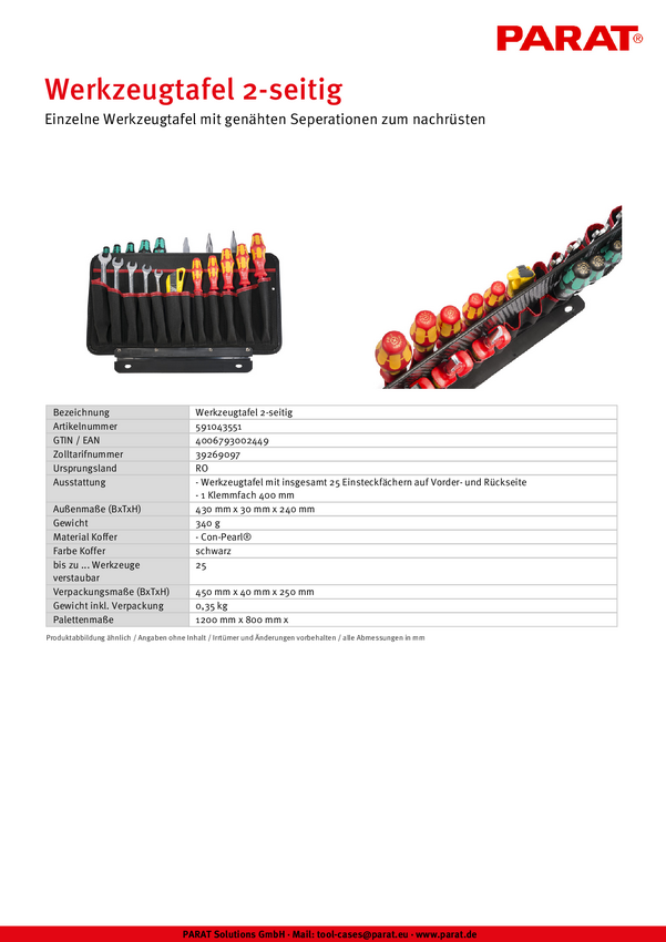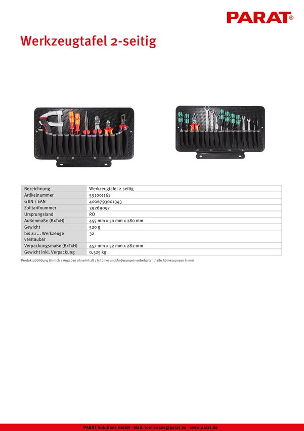 Parat 594000161 Tablica na narzędzia 1 szt. (D x S x W) 430 x 20 x 240 mm