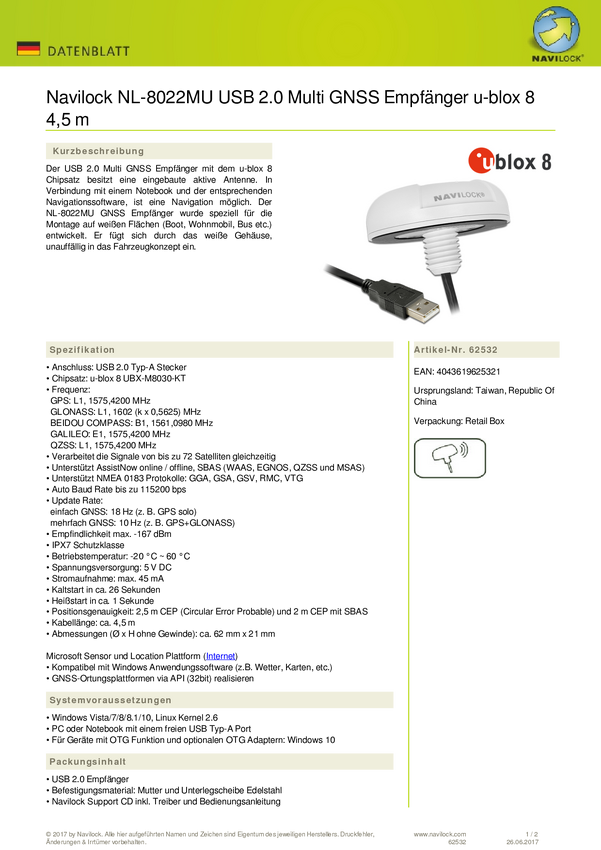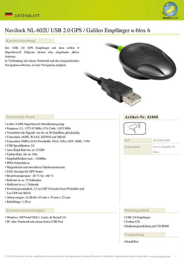 Navilock NL-8022MU Odbiornik GPS biały 1 szt.