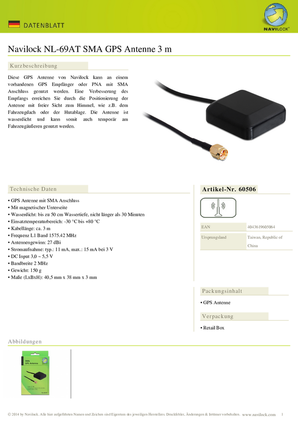 Navilock NL-69AT SMA Odbiornik GPS czarny 1 szt.
