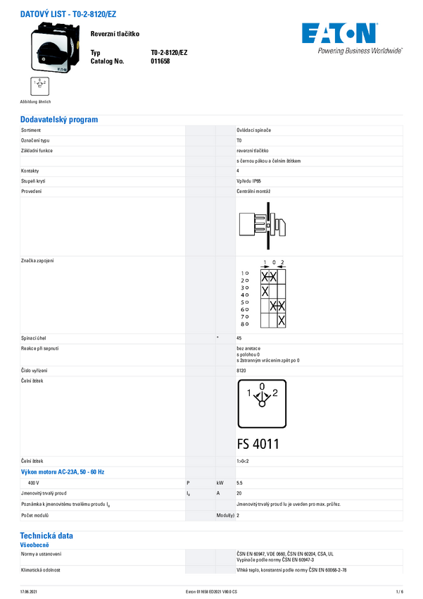 Eaton 011658 T0-2-8120/EZ Przycisk nawrotny 1 szt.