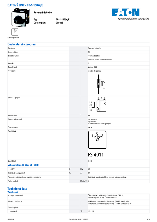 Eaton 009146 T0-1-15074/E Przycisk nawrotny 1 szt.