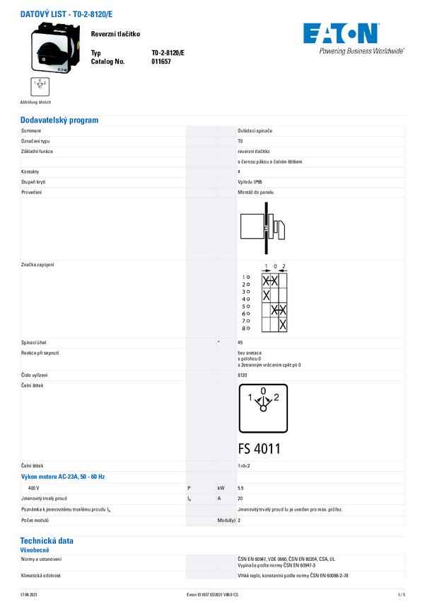 Eaton 011657 T0-2-8120/E Przycisk nawrotny 1 szt.