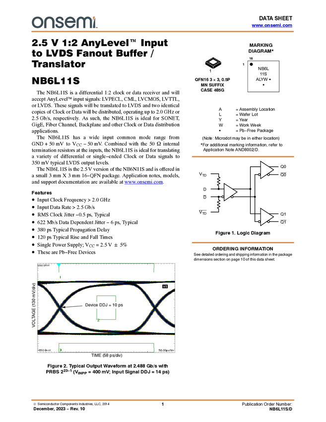 Clock / Data Fanout Buffer, 1:2 AnyLevel™ Input, LVDS, 2.5 V