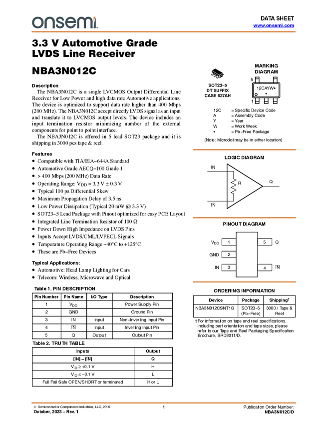 3.3 V Automotive Grade LVDS Line Receiver