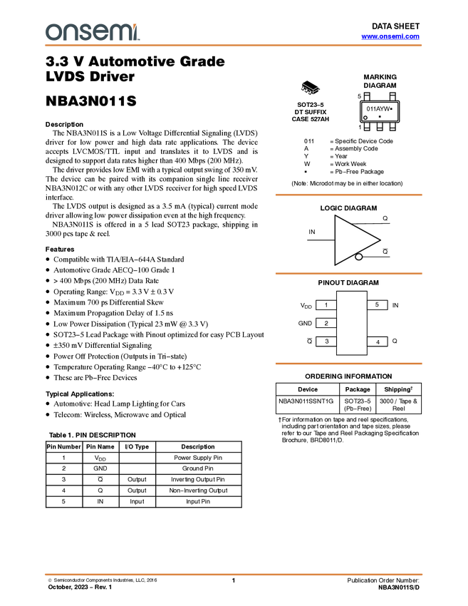 3.3 V Automotive Grade LVDS Driver