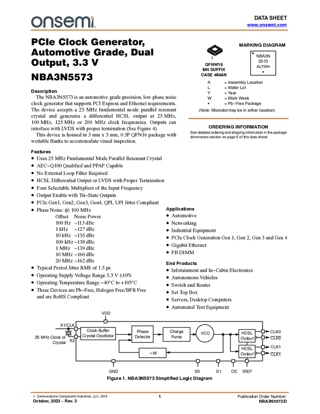 PCIe Clock Generator, Automotive Grade, Dual Output, 3.3 V