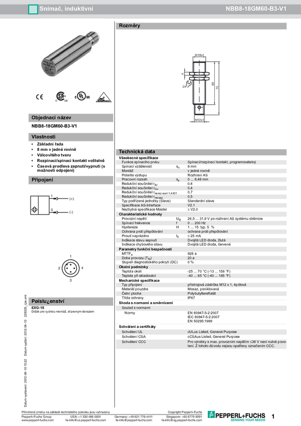 Pepperl+Fuchs Czujnik indukcyjny Interfejs AS NBB8-18GM60-B3-V1