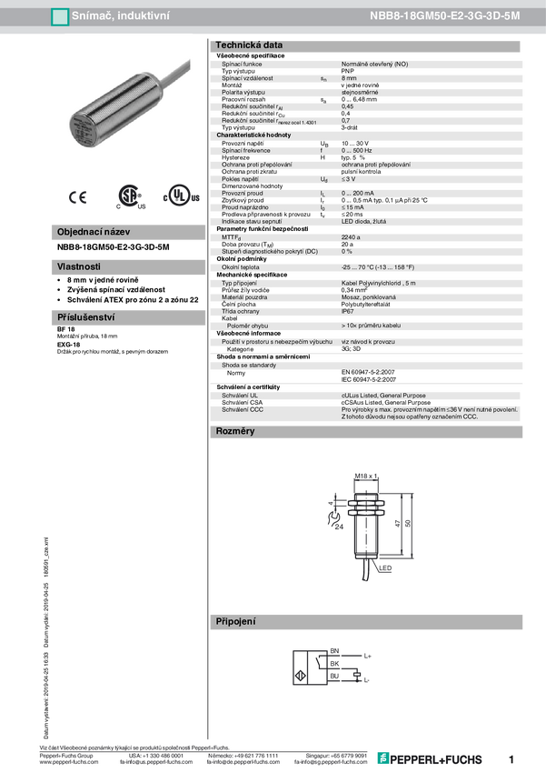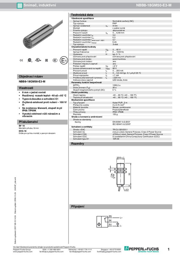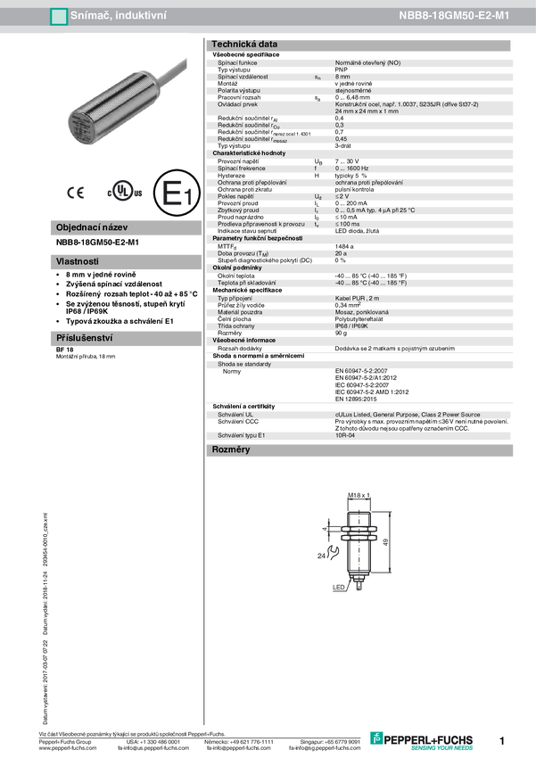 Pepperl+Fuchs Czujnik indukcyjny PNP NBB8-18GM50-E2-3G-3D- xx3Gxx3D