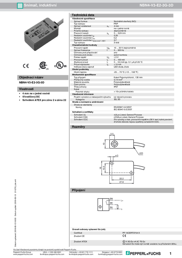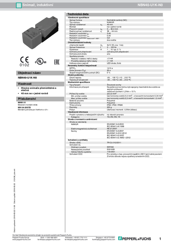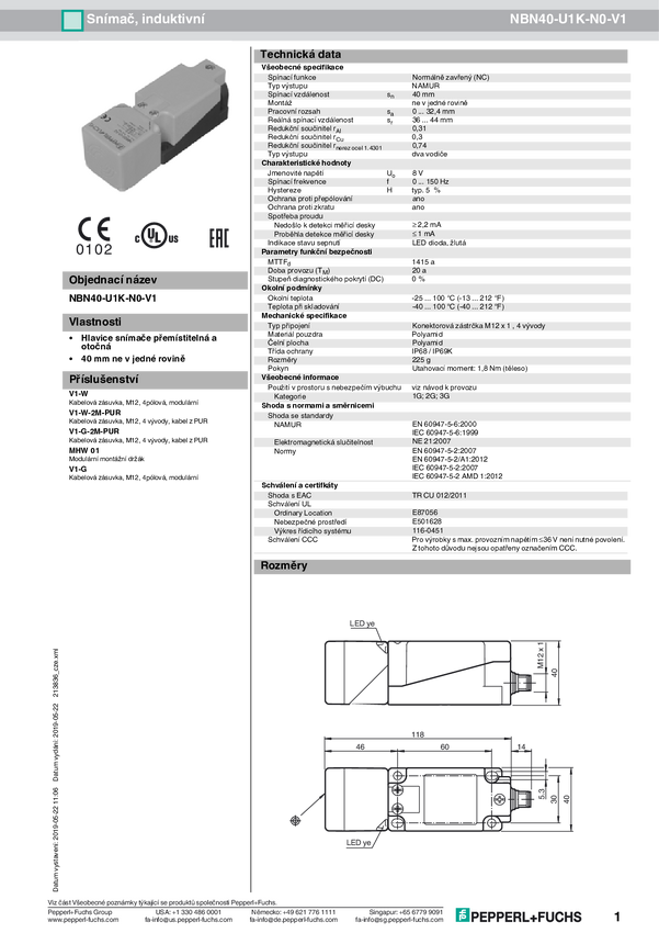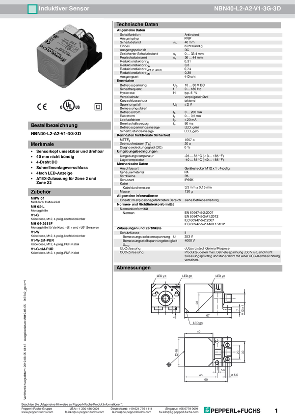 Pepperl+Fuchs Czujnik indukcyjny NAMUR NBN40-U2K-N0 123G1xxD