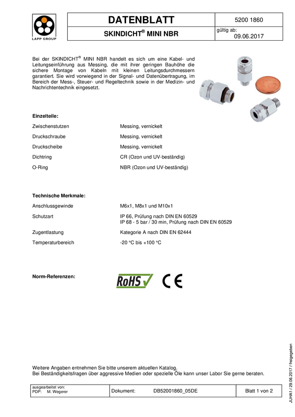 LAPP 52001895 Dławnica kablowa SKINDICHT® MINI 10 x 1 NBR, od 5 mm, do 7 mm, M10, 1 szt.