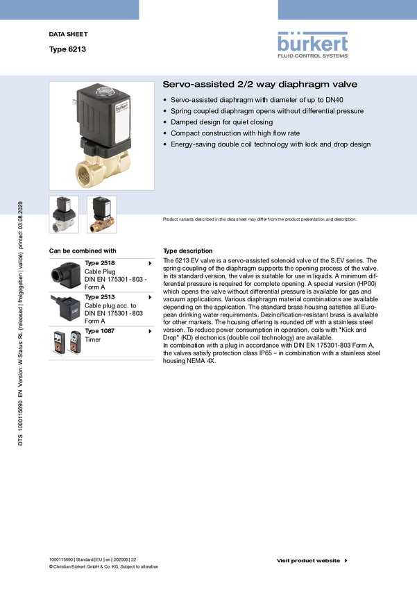 Serwozawór sterowany Bürkert 221674 24 V/DC nakrętka G1/4 Materiał obudowy stal nierdzewna Element uszczelniający NBR