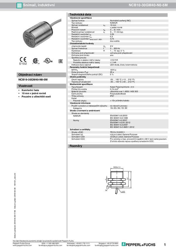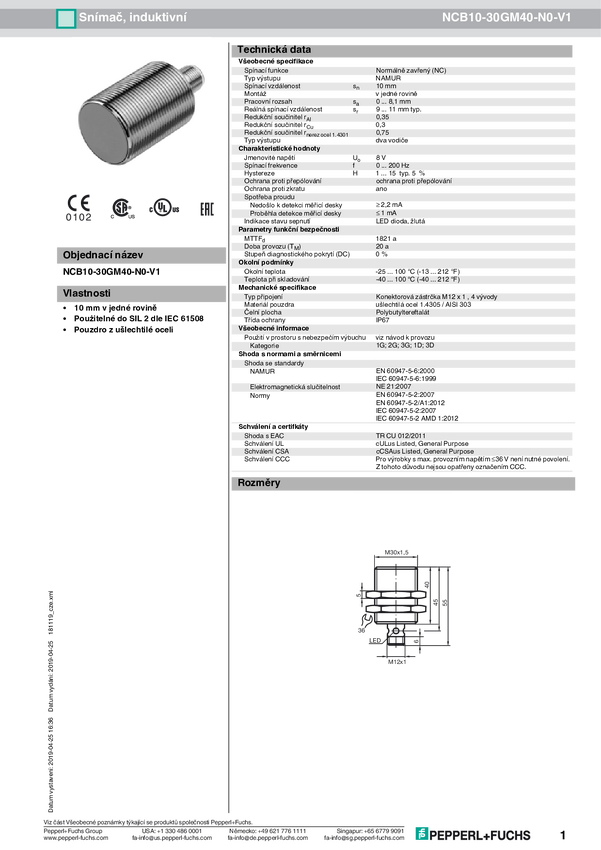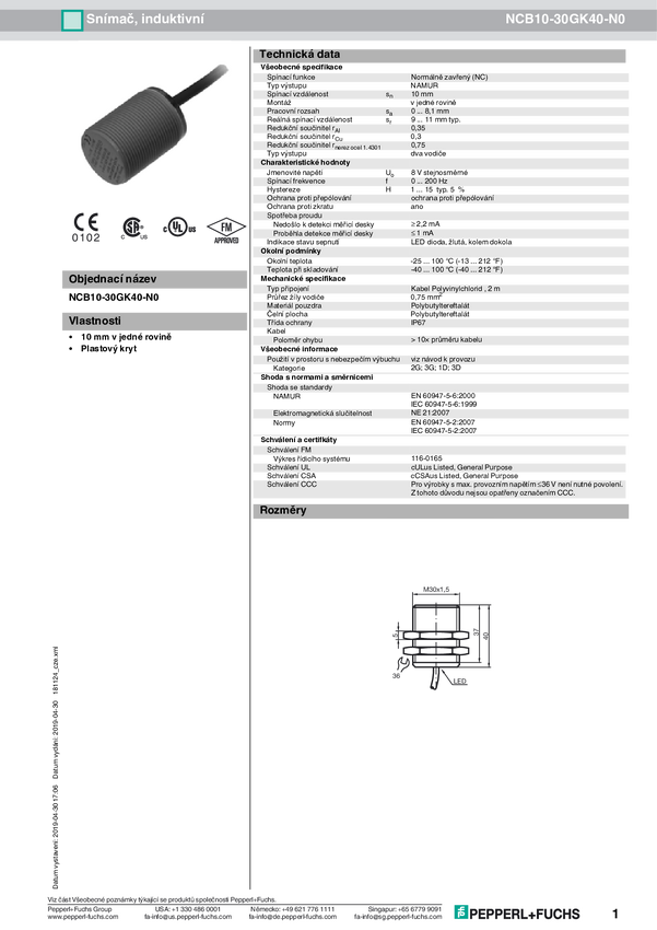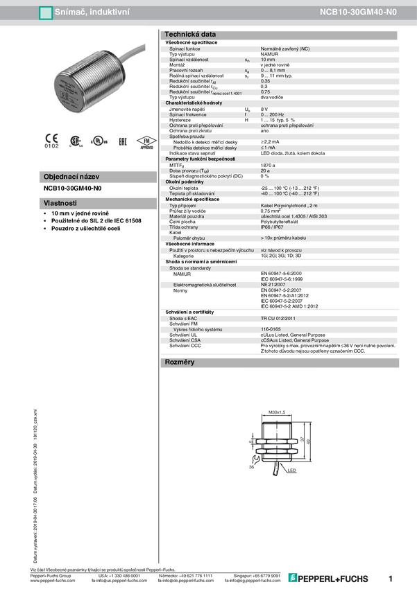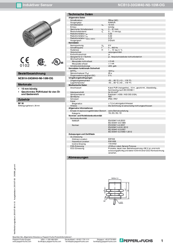 Pepperl+Fuchs Czujnik indukcyjny NAMUR NCB10-30GM40-N0-V1 123G1x3D