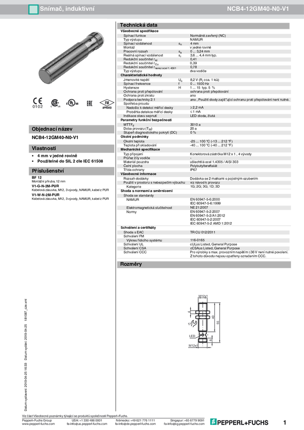 Pepperl+Fuchs Czujnik indukcyjny NAMUR NCB40-FP-N0-P1-V1 12xG1xxD