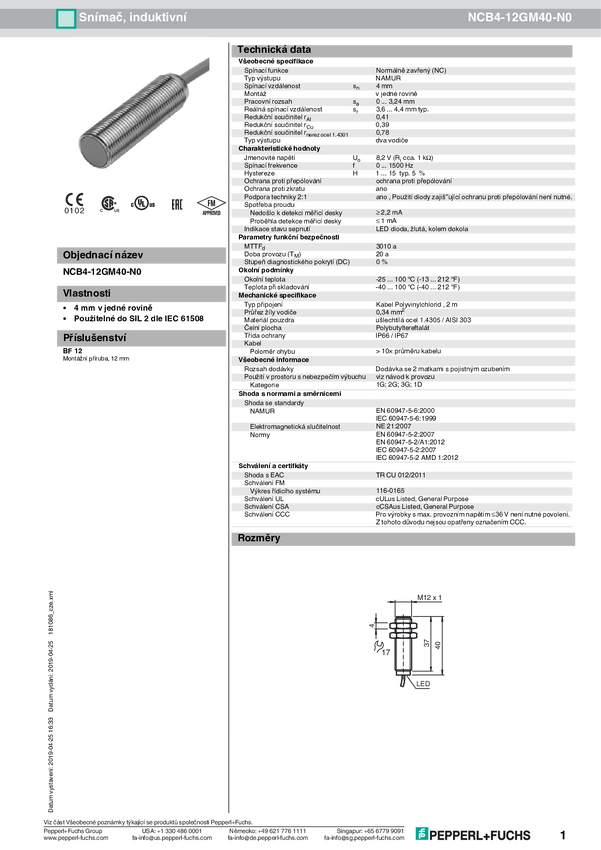 Pepperl+Fuchs Czujnik indukcyjny NAMUR NCB4-12GM40-N0 123G1xxD