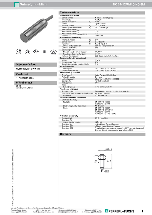 Pepperl+Fuchs Czujnik indukcyjny NAMUR NCB4-12GM40-N0-5M 123G1xxD