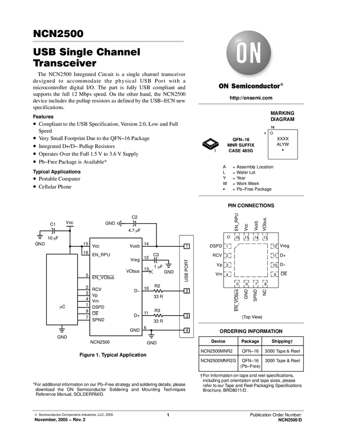 Ethernet Controller, 10 Mb/s, Single-Pair, MAC + PHY, 802.3cg, 10BASE−T1S Compliant