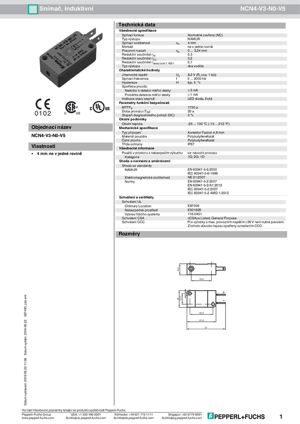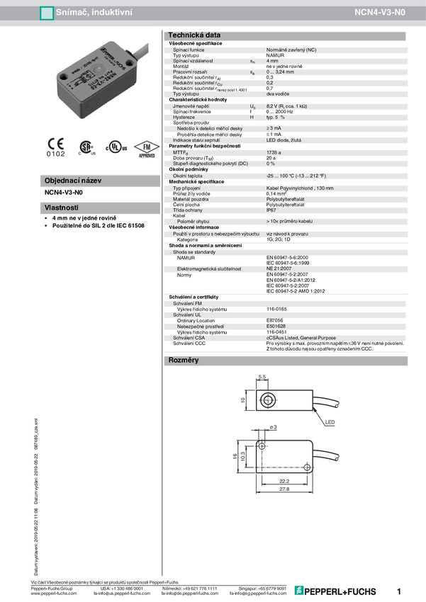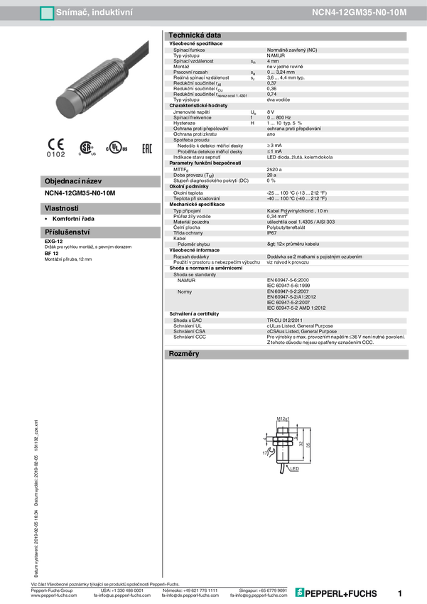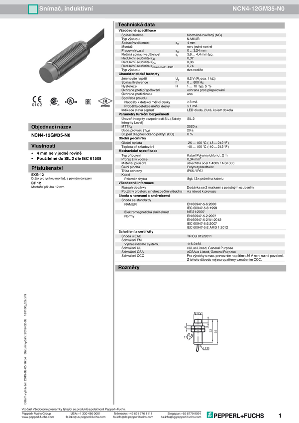 Pepperl+Fuchs Czujnik indukcyjny NAMUR NCN4-V3-N0-V5 12xG1xxD