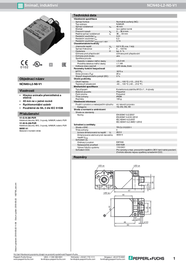 Pepperl+Fuchs Czujnik indukcyjny NAMUR NCN40-L2-N0-V1 123Gxx3D