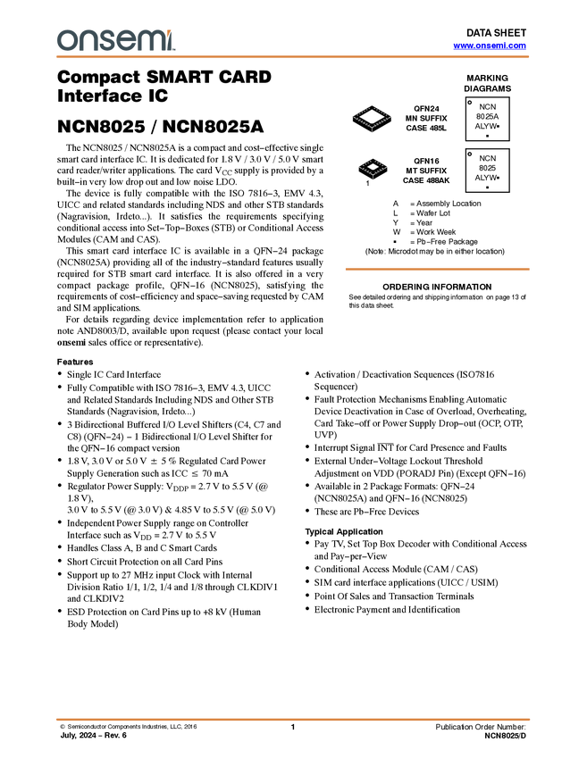 Compact Smart Card Interface IC 16-Pin QFN EP T/R