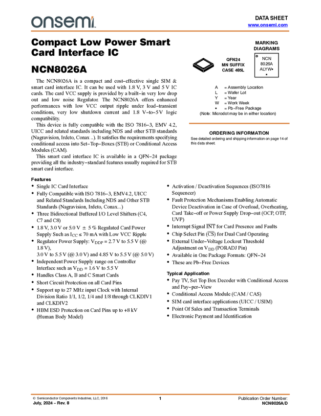 Compact Low Power Smart Card Interface IC SMD 24-Pin QFN T/R