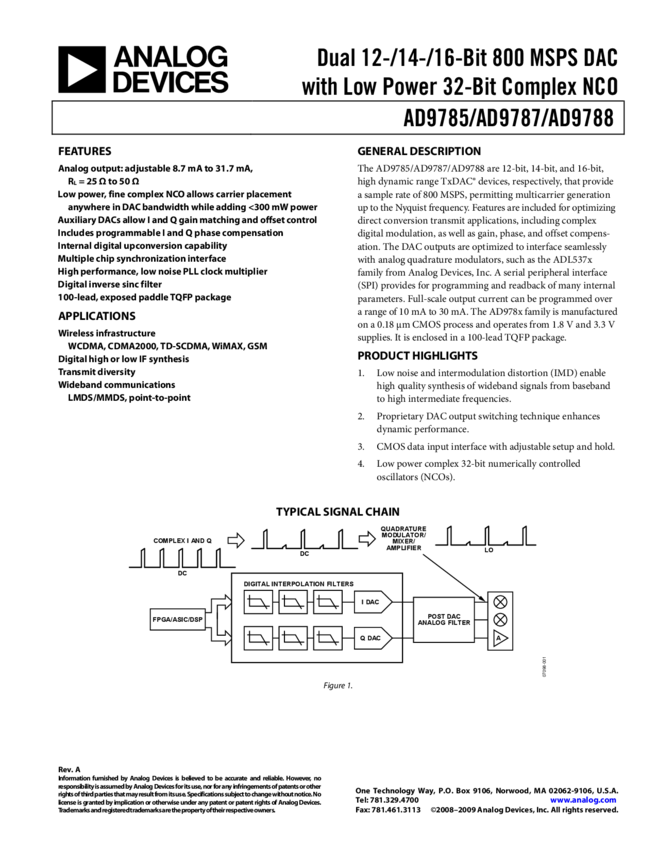 Dual 12-Bit 800 MSPS DAC with Low Power 32-Bit Complex NCO