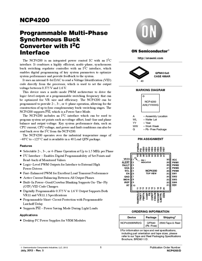 DC DC Cntrlr Quad-OUT Sync Buck 1.7V to 24V Input 40-Pin QFN EP T/R