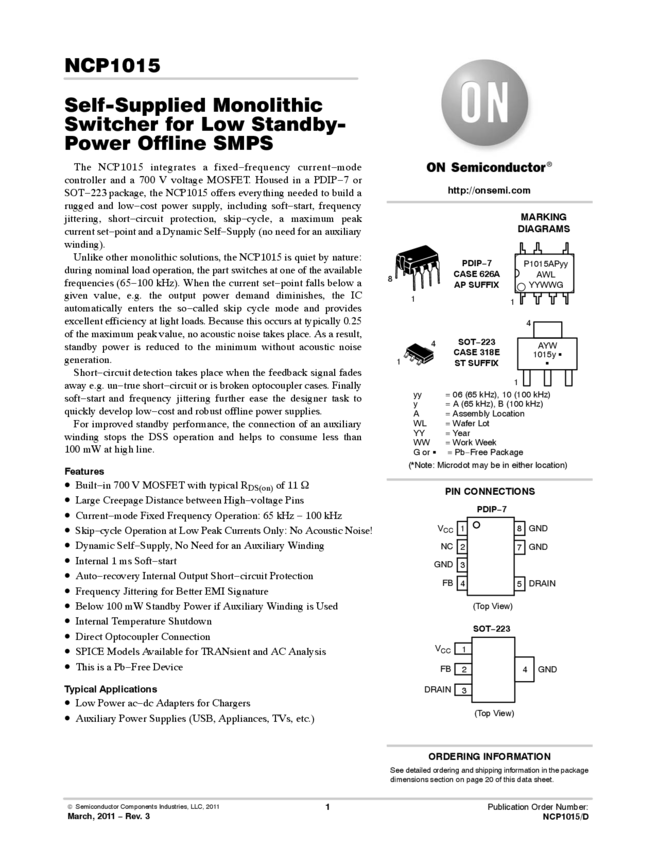 Self Supplied Monolithic Switcher 4-Pin(3+Tab) SOT-223 T/R