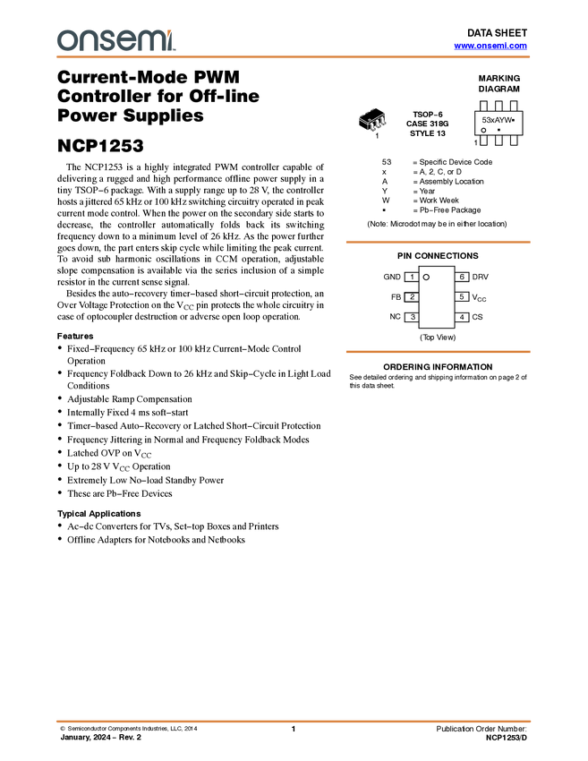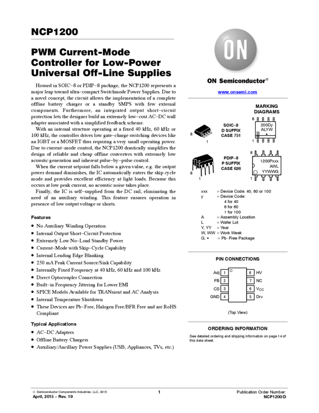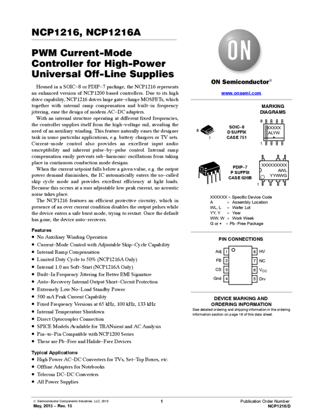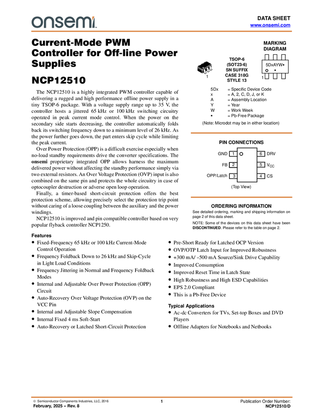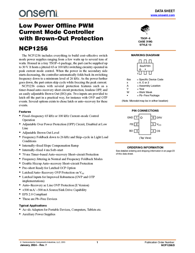 Controller, Fixed Frequency, Current Mode, for Flyback Converters