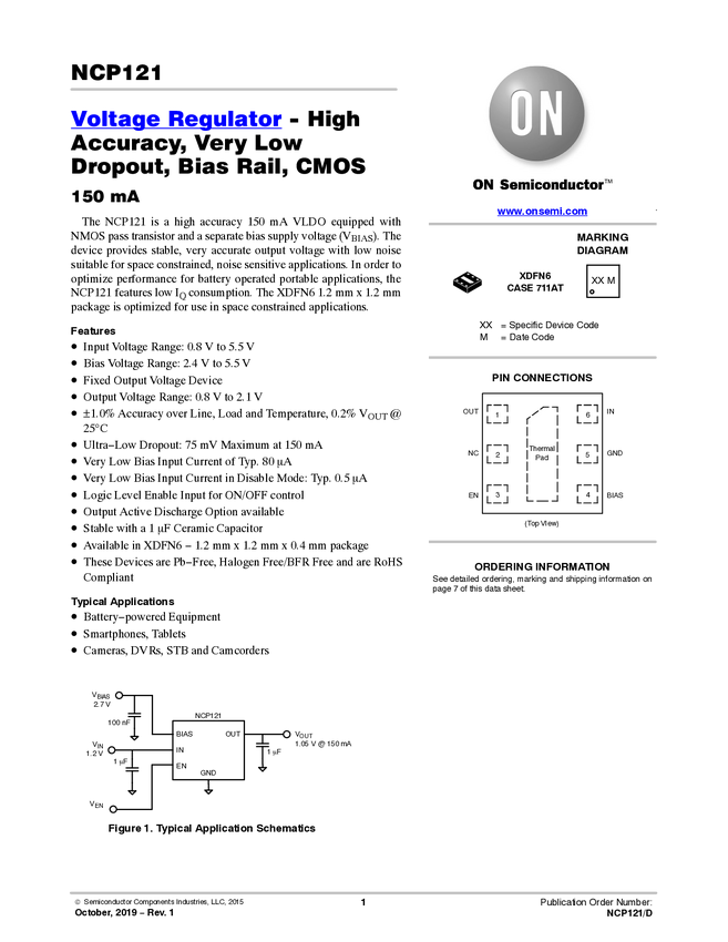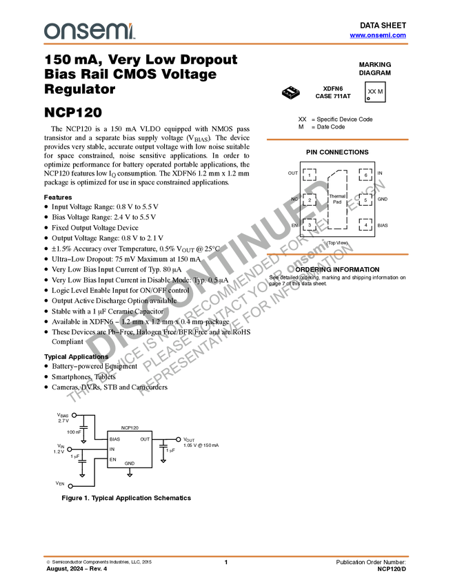 LDO Regulator, 150 mA, Ultra-Low Dropout, High PSRR, with Bias Rail