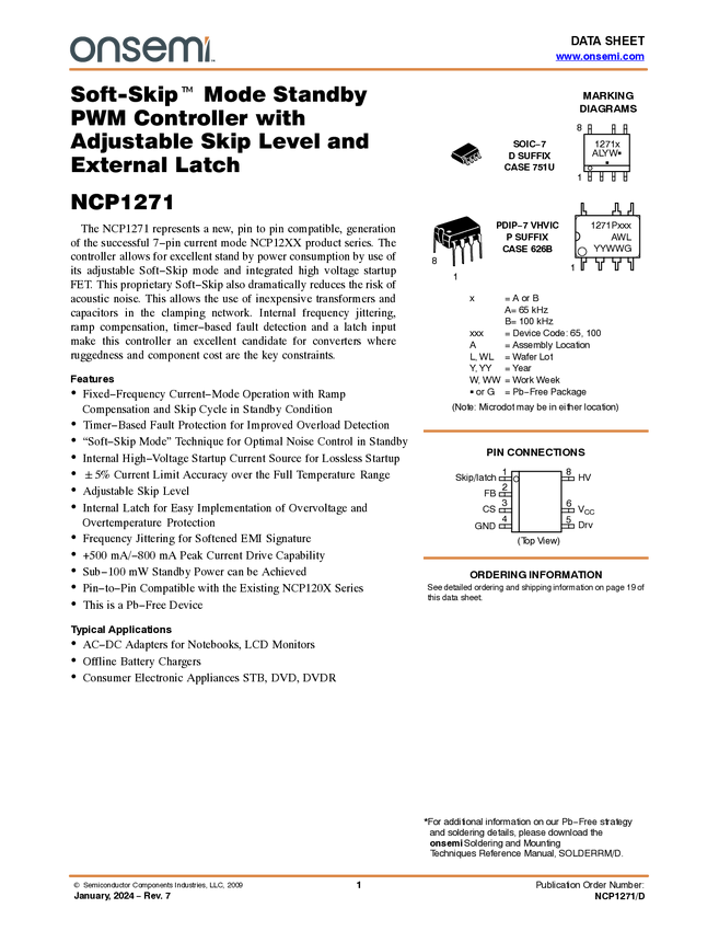 PWM Controller, Soft-Skip™ Standby, with Adjustable Skip Level and External Latch