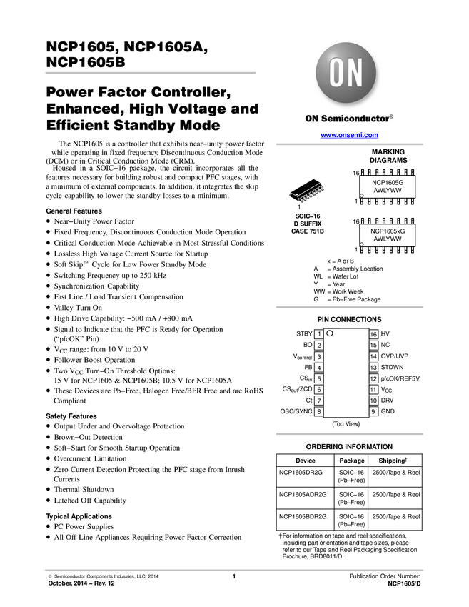 Power Factor Controller, Enhanced, High Voltage and Efficient Standby Mode