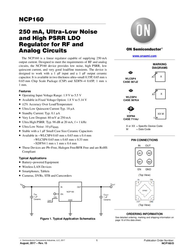 LDO Regulator, 250 mA, Ultra-High PSRR, Ultra-Low Noise