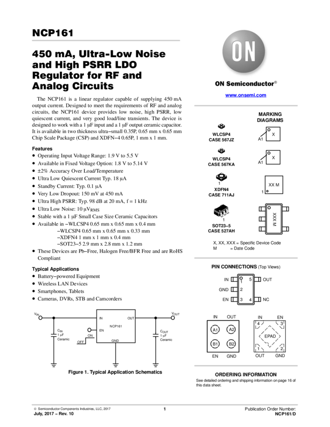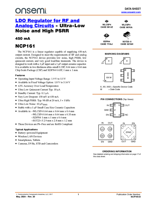 LDO Regulator, 450 mA, Ultra-High PSRR, Ultra-Low Noise